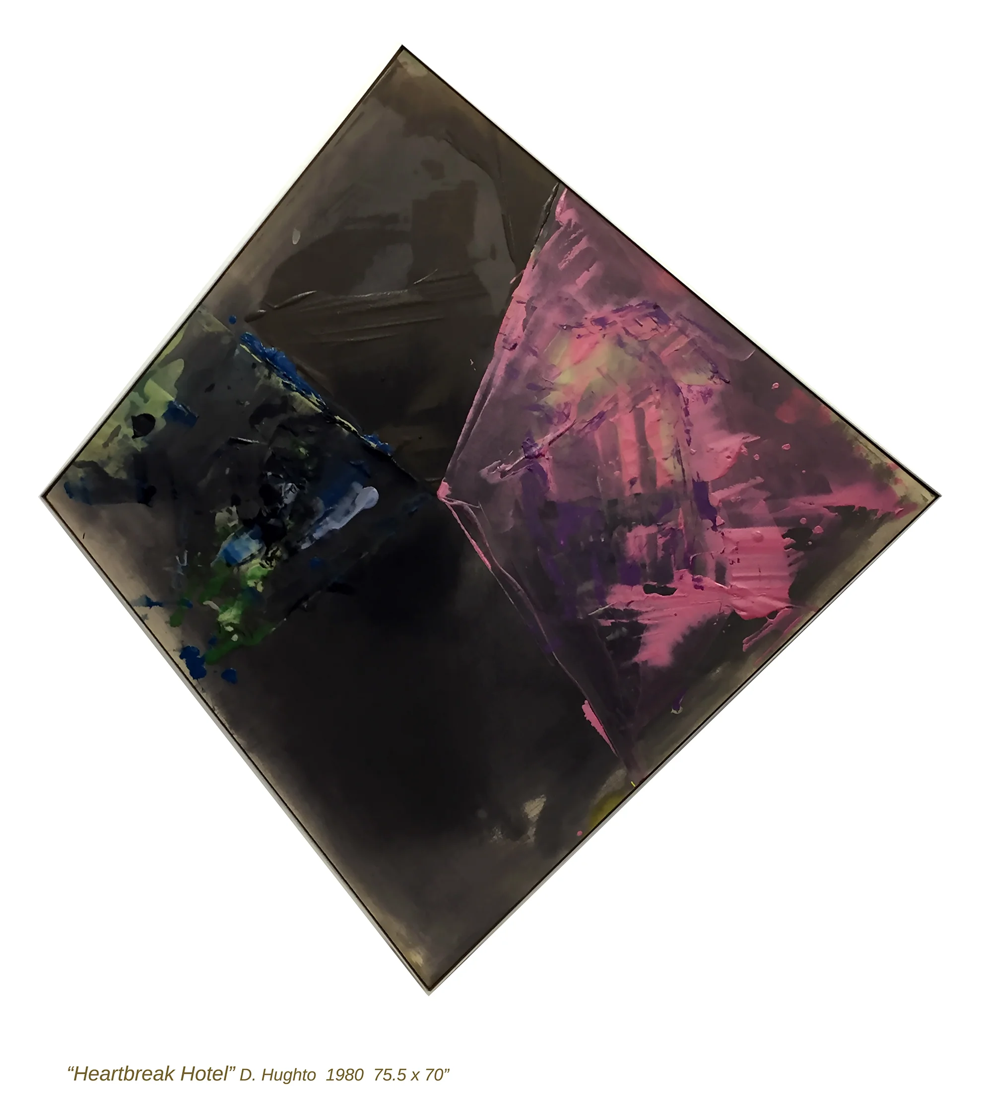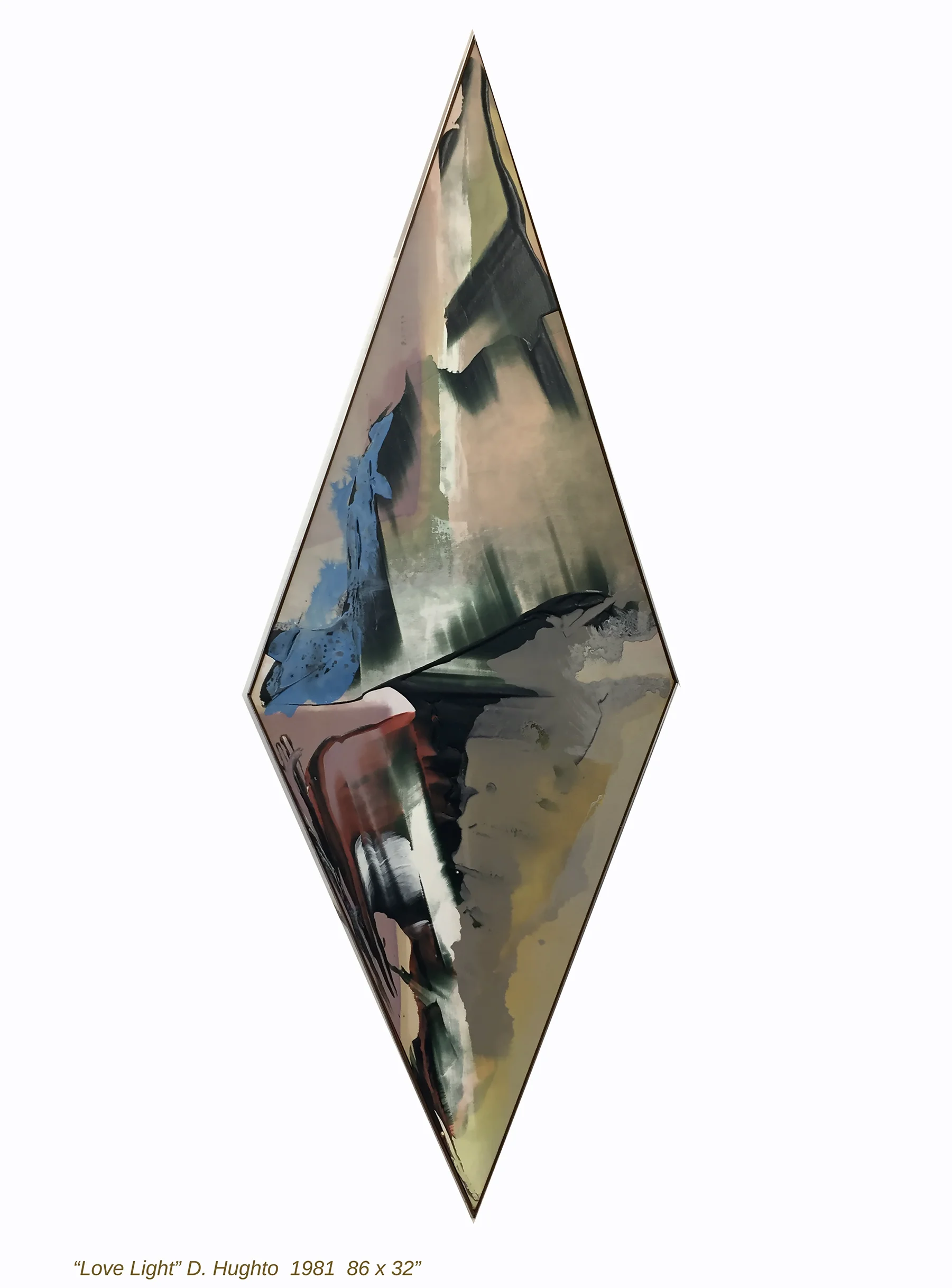 In 1973, Hughto began a long running series of geometric abstract paintings in diamond formats, sometimes inscribed in a rectangle, sometimes a square canvas turned to a diamond and sometimes an irregular diamond shape. These were featured in his recent show at the Everson Museum of Art, Syracuse NY, summer 2018, Darryl Hughto: Diamonds to Sailboats.