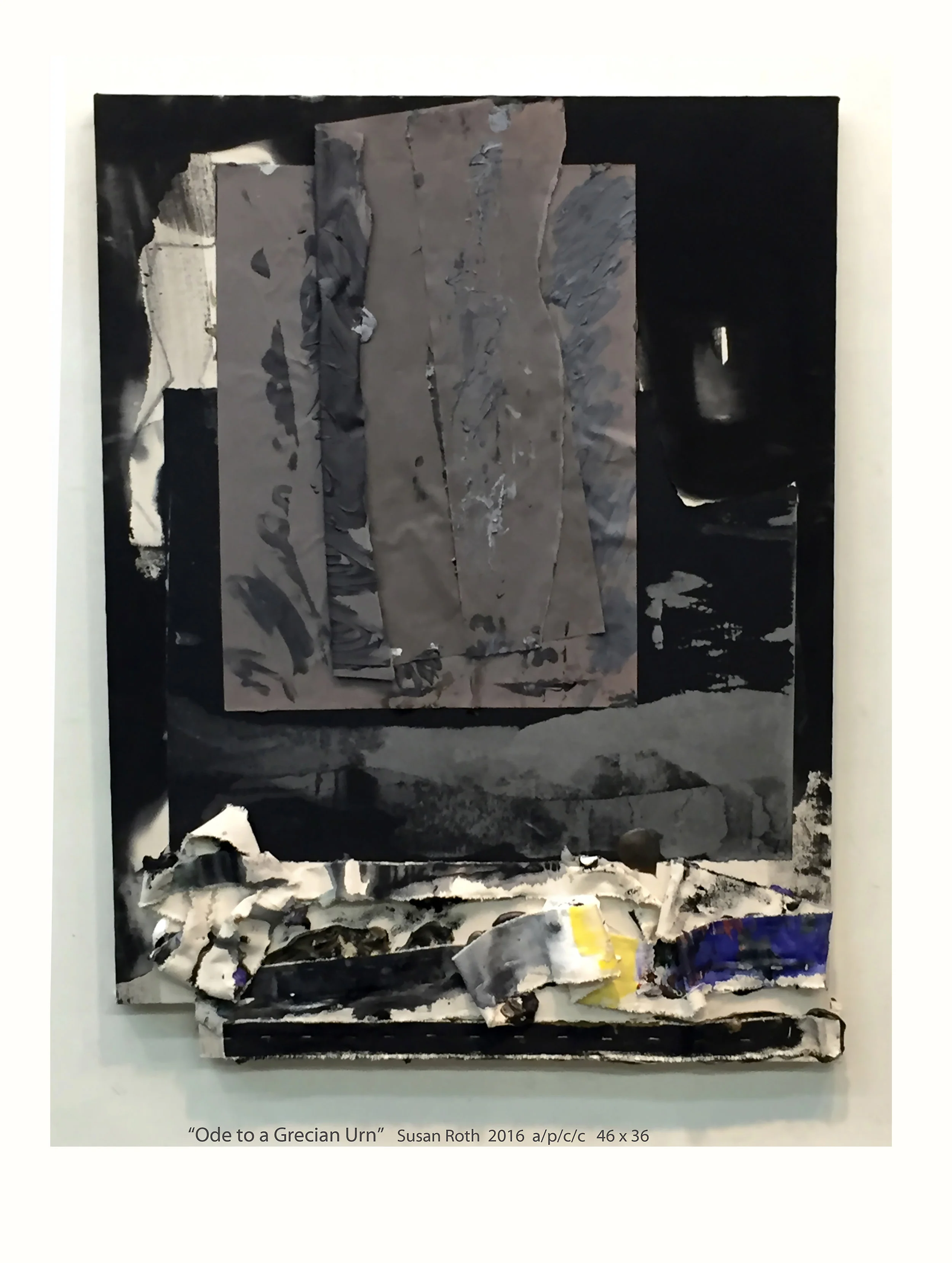 Susan Roth’s The Black Dresses are a series of paper on canvas collage paintings that began in 2016 and are ongoing. Please enjoy a selection from the series.